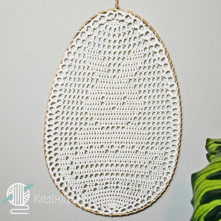 Het Blij Ei haakpatroon wordt gehaakt met de filet haaktechniek. Hierbij creëer je een figuur door stokjes en lossen te combineren. Dit patroon wordt gehaakt met Scheepjes Catona en past in een metalen ei-vorm van 35 centimeter.