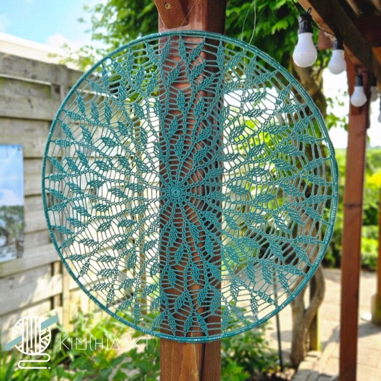 - Ring: kies een ring op basis van hoe groot jouw eindresultaat is. In het patroon staan instructies om uit te rekenen wat de meest geschikte ring is voor jouw mandala. Je vindt hier een overzicht met winkels die mandalaringen verkopen.